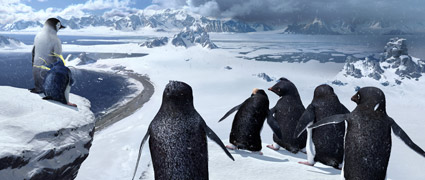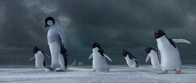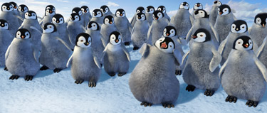 Happy Feet wordt her en der omschreven als een animatiekruising tussen Moulin Rouge en March of the Penguins, en dat is eigenlijk best de nagel op de kop. De CGI-camera glijdt over de barre ijsvlaktes van Antarctica, de biotoop van de keizerpinguïn. De mannetjes en vrouwtjes maken er elkaar het hof met hun hartslied: de vrouwtjes lopen zingend door de menigte, de mannetjes antwoorden en als de melodieën klikken spatten de liefdesvonken door de koude lucht.
